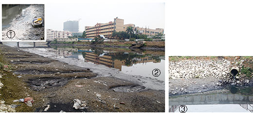 圖②:茅洲河一支流,河面及河道污染嚴重。
