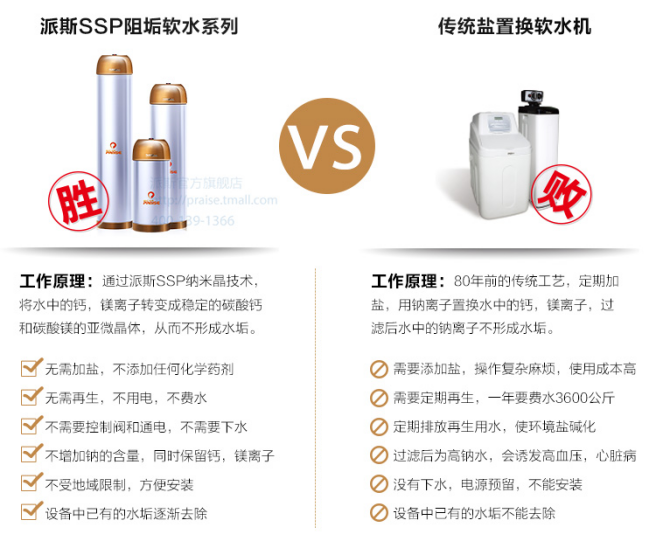 與市場上傳統(tǒng)的加鹽軟水技術(shù)相比,派斯無鹽軟水機(jī)是物理軟水的方式,節(jié)能環(huán)保,無需定期加鹽和維護(hù),也節(jié)省了費(fèi)用。而加鹽軟水機(jī)軟化后的水是高鈉水,水里都是鹽,鹽是具有腐蝕性的,所以軟化后的鹽水既不能飲用,也不能澆花、養(yǎng)魚、做飯,洗澡皮膚上也有一層滑滑的鹽;母杏X不是正常水的感覺,而是鹽的感覺。無鹽軟水機(jī)軟化后的水沒有往水里添加任何物質(zhì),可以正常的澆花、養(yǎng)魚、做飯,物理阻垢后,沒有水垢洗澡更舒適,洗衣服更柔軟,還可以保護(hù)家中地暖以及用水設(shè)備。加鹽軟水機(jī)需要每周往水里添加10kg的鹽,50元/袋,每個(gè)月基本就是200元,每年2000多塊錢的維護(hù)成本。每次添加鹽后,都要沖洗,把高濃度的鹽水排放到地下,造成二次污染;無鹽軟水機(jī),只需要3-6個(gè)月?lián)Q一根PP棉即可,30元/根。省去了很多麻煩。